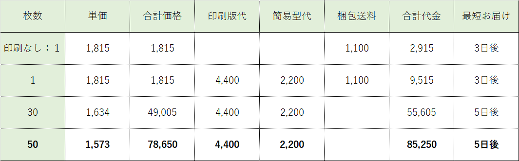 ¥1,573 /印刷込み50枚の単価
