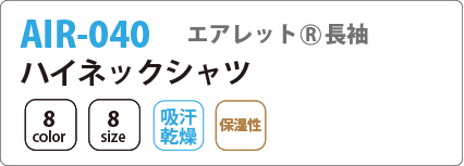 AIR-040(吸汗速乾)(保湿性)エアレット長袖ハイネックTシャツ【日本製】 胸元を守るハイネック仕様 防寒インナーにも使える純国産シャツ ◎中空糸使いで、軽里吸汗速乾性を実現 ◎肌面メッシュ構造で不快なハリつきを防止。 ラグラン仕様で、肩や腕を動かしやすい。 純国産のカジュアル機能長袖Tシャツ 日焼け対策として夏場に長袖もオススメ! 吸汗速乾機能で汗などのベタつきを抑えます。 オールシーズン“エアレット®”で決まり! ①表面は綿Tシャツの見た目 生地の表面は綿/ポリエステルの混紡糸を使用し、スポーティーすぎないカジュアルな見た目となめらかな肌触りを両立。Tシャツといえば綿だ!という方も抵抗感なく着られます。 ②裏面はポリエステルTシャツの機能性 生地の裏面はポリエステル100%のハニカムメッシュ構造です。皮膚への接着面が少なく、優れた吸汗速乾性で衣服内はいつでも爽やかです。 ③その他の機能要素 ■クーリング性・保温性 中空糸を使用することにより、繊維内により多くの空気層を維持するため、クーリング性と保温性に優れ夏は涼しく、冬は暖かく、年中快適です。 ■軽量性 繊維内部が空洞になっていることで、通常のTシャツに比べ軽量感を実現、軽やかな着心地を提供します。 ★豊富な18色のカラーバリエーション ★大きなサイズまで対応の8サイズ展開 イズ展開・各価格(印刷なし枚単価) 【マルチナプリント代】 販売価格¥3,708.− /プリントなし単価種別・品番 AIR-040 ホワイト サイズ:SS~3LAIR-040 ホワイト サイズ:4L~5LAIR-040 カラー サイズ:SS~3LAIR-040 カラー サイズ:4L~5L カラー ホワイト ライトグレー カーキ ロイヤルブルー チャコール レッド ネイビー ブラック サイズ SS S M L LL 3L 4L 5L 印刷方法 1色/胸面 最大印刷範囲:W250×H200㎜(シルク印刷) 1色/背面 最大印刷範囲:W250×H200㎜(シルク印刷) 1色/肩面 最大印刷範囲:W100×H100㎜(シルク印刷) フルカラー//胸面 最大印刷範囲:W250×H200㎜(フルカラー印刷) フルカラー//背面 最大印刷範囲:W250×H200㎜(フルカラー印刷) フルカラー//肩面 最大印刷範囲:W100×H100㎜(フルカラー印刷) 印刷色 フルカラー 黒 赤 白 金 銀 その他 ご意見。ご要望 印刷代 印刷版代 【包装形態】 【サイズ】 【容量】 【品名】 AIR-040(吸汗速乾)(保湿性)エアレット長袖ハイネックTシャツ【日本製】【品番】 AIR-040【素材】 ポリエステル65% 綿35% 生地定番<AIR-365>使用 ※東レ・完全中空ポリエステル原綿使用 163g/㎡ 4.8OZ【カラー】 ホワイト ライトグレー カーキ ロイヤルブルー チャコール レッド ネイビー ブラック【サイズ】 SS S M L LL 3L 4L 5L【レンズの種類】 【レンズ枠】 【テンプル】 【可視光線透過率】 【紫外線透過率】 数量 在庫在庫有り カテゴリー:アパレル, 日本製, Tシャツ