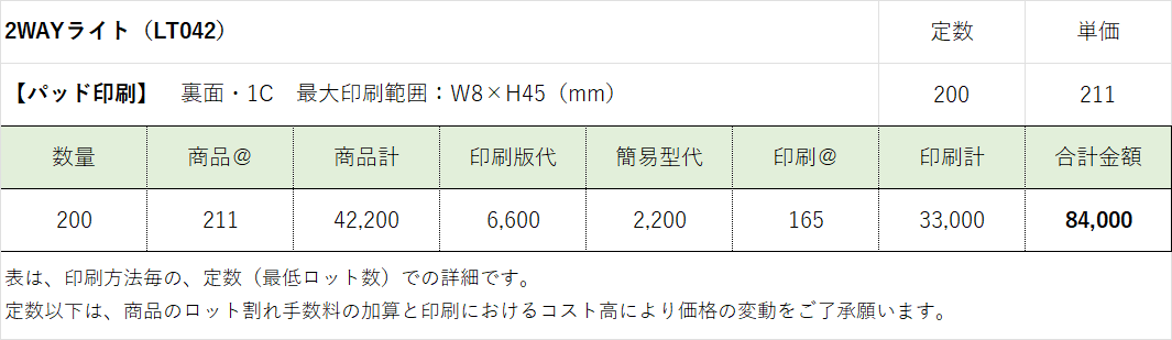 ¥308 /100個の印刷込み単価