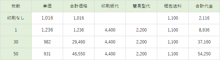 ※価格表内の商品代金は「パッド印刷1ヵ所1C込みの価格」です。