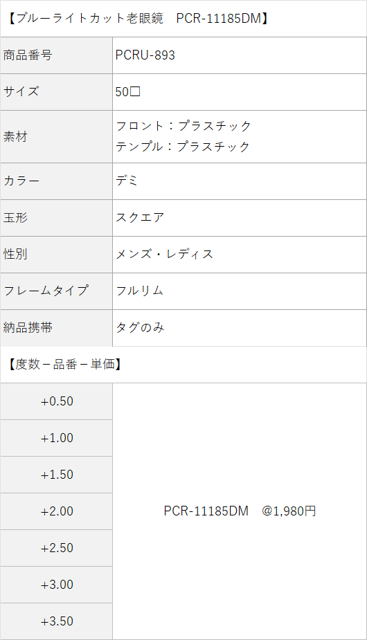 【老眼鏡(名入れあり/なし別)・価格の目安】(価格の単位:円)