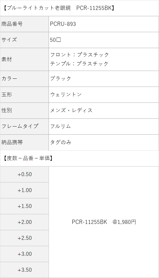 【老眼鏡(名入れあり/なし別)・価格の目安】(価格の単位:円)