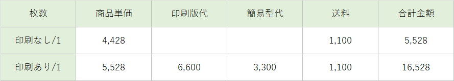 ②「名入れ印刷あり(1ヵ所/1C)」の価格です。