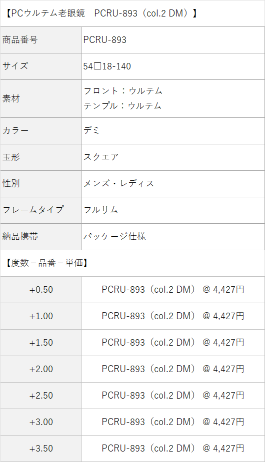 【老眼鏡(名入れあり/なし別)・価格の目安】(価格の単位:円)
