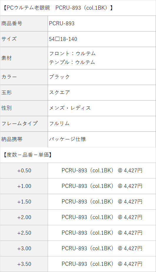 【老眼鏡(名入れあり/なし別)・価格の目安】(価格の単位:円)