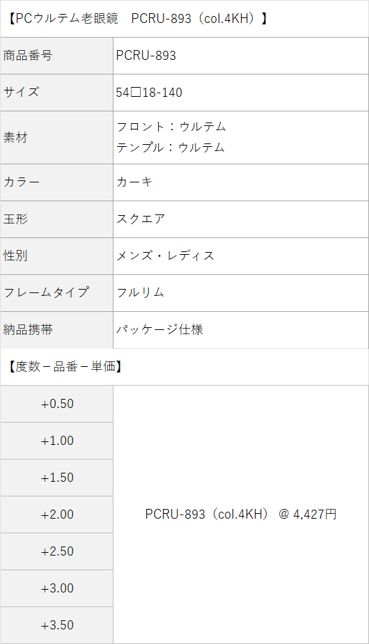 【老眼鏡(名入れあり/なし別)・価格の目安】(価格の単位:円)