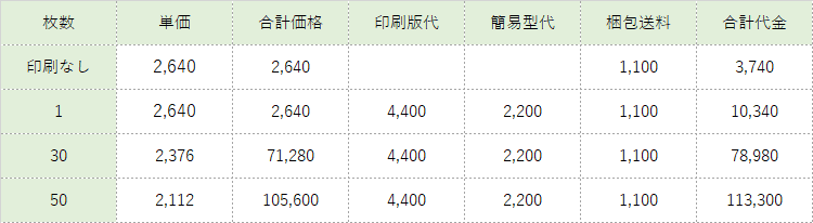 ¥1,940 /印刷込み50枚の単価