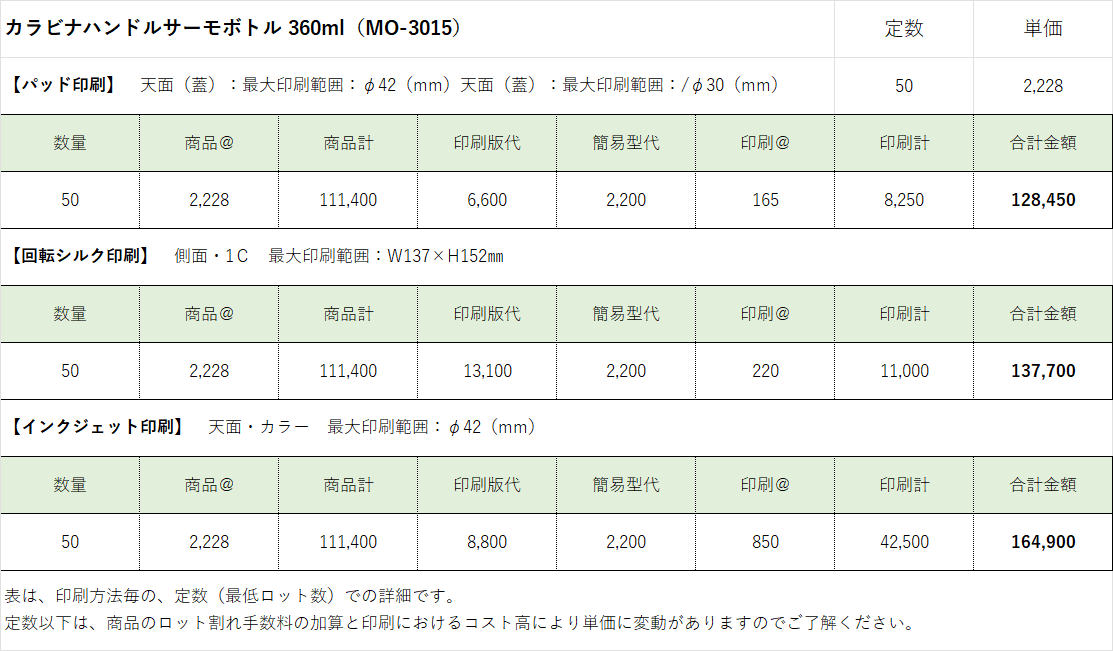 ¥333 /200個の印刷込み単価