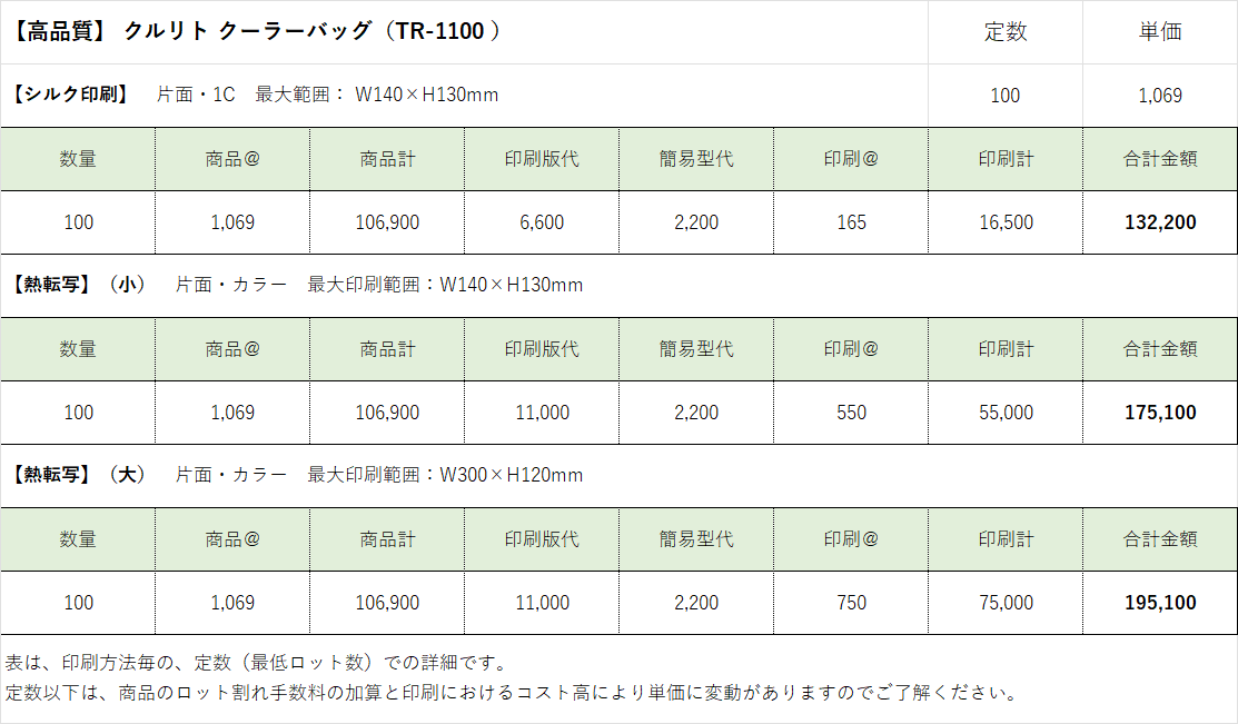 ¥308 /100個の印刷込み単価