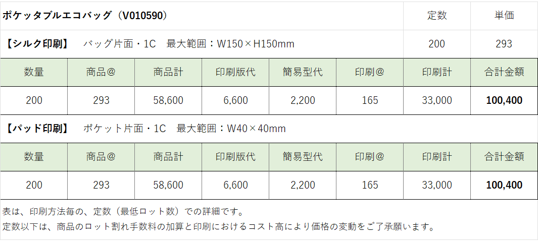 ¥630 /100個の印刷込み単価